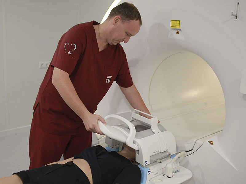 Магнитно-резонансная томография (МРТ) представляет собой высокоинформативный метод, позволяющий исследовать внутренние органы и их системы и диагностировать широкий спектр нарушений. Томография позволяет получать точные изображения срезов сосудов, мягких тканей, органов в различных плоскостях и реконструировать пространственное расположение внутренних структур. В некоторых случаях делают МРТ с контрастным препаратом, которое вводится внутривенно. Длительность диагностики зависит от вида исследования и его сложности и может занимать от 15 минут до часа.