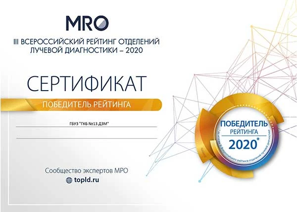 В 2020 году Отделение лучевой диагностики принимало участие в престижном конкурсе на право занять первые позиции Всероссийского независимого рейтинга отделений лучевой диагностики «ТОП ЛД».